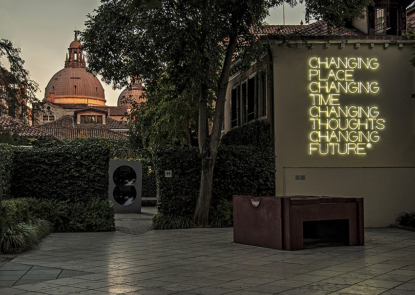 Maurizio Nannucci, Changing Place, on display at the Peggy Guggenheim Collection, Venice, in 2015 [Galleria Fumagalli/Wikimedia Commons]